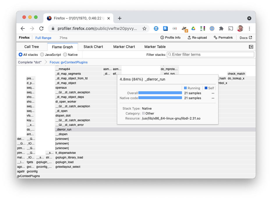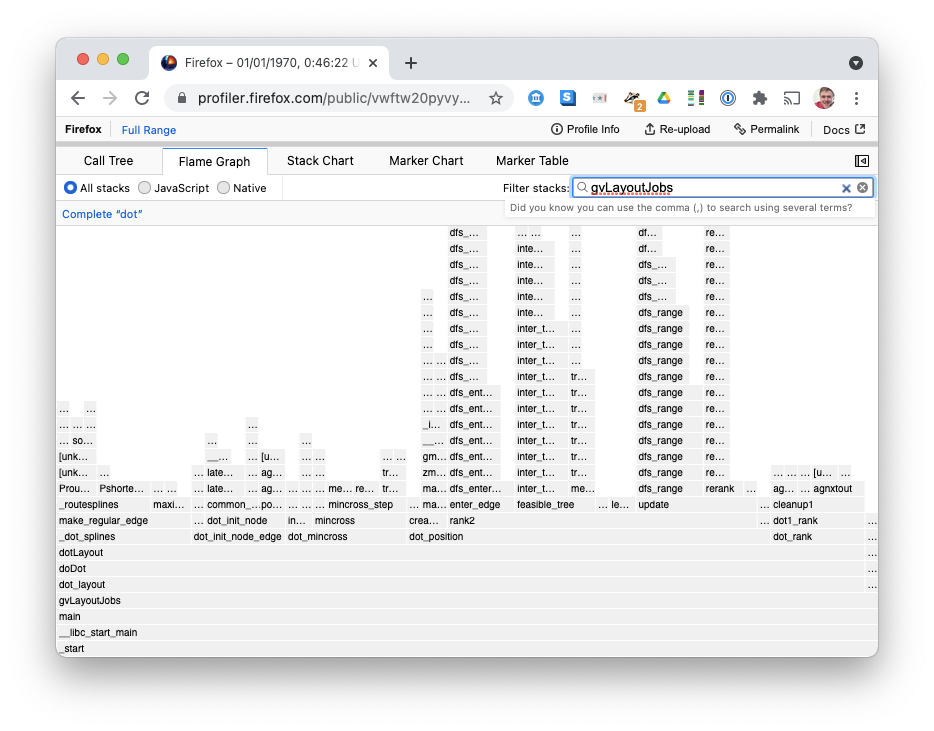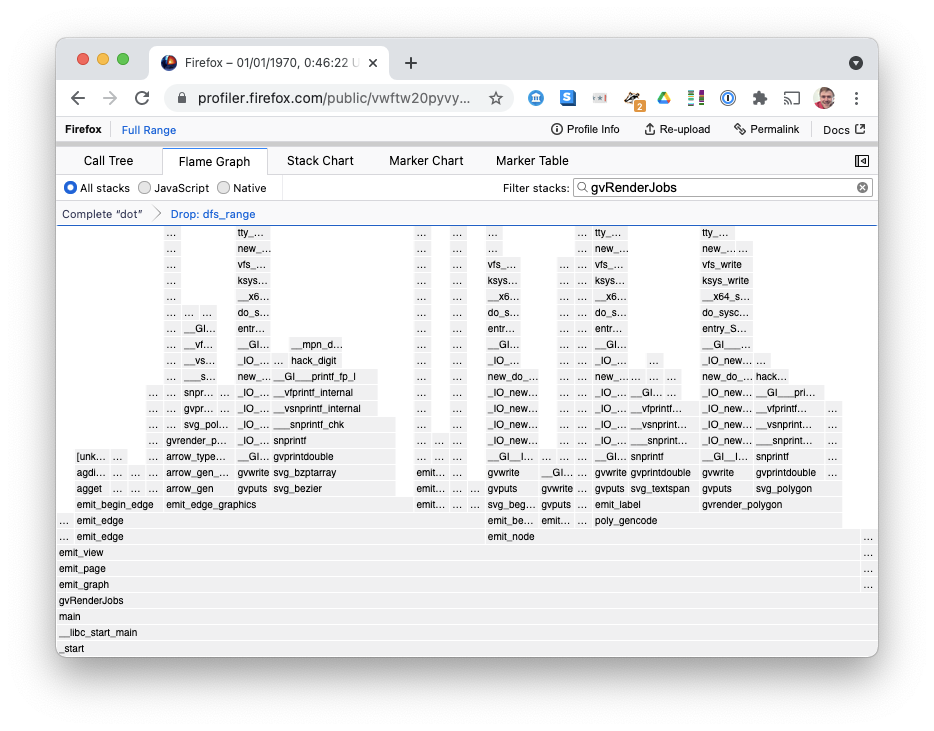 main calls gvLayoutJobs calls dot_layout... it worked! Open in Firefox ProfilerInterpreting the Profile